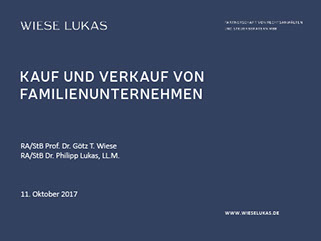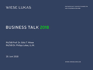 Focus Steuern und Unternehmensrecht: Der WIESE LUKAS Veranstaltungskalender 2017/2018 ist erschienen. Diesem können Sie Ankündigungen zu unseren hausinternen Workshops zu aktuellen Themen an der Schnittstelle von Steuern und Unternehmensrecht entnehmen. Wir laden Sie herzlich ein! Zudem sind Verweise auf Veranstaltungen anderer Organisationen, an denen wir als Mitveranstalter bzw. Referenten mitwirken, enthalten. Sollten Sie bislang kein Exemplar per Post erhalten haben, sprechen Sie uns gerne an. Wir freuen uns darauf, Sie zu unseren Veranstaltungen begrüßen zu dürfen.