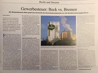 Die Brauerei Beck klagt gegen die Stadt Bremen wegen Gewerbesteuer beim Verkauf des Unternehmens im Jahr 2002. Es geht um 146 Millionen Euro. Das Verfahren hängt mittlerweile beim Bundesverfassungsgericht und ist für die M&A-Branche von großer Relevanz. Götz T. Wiese bespricht das Verfahren in der Presse.